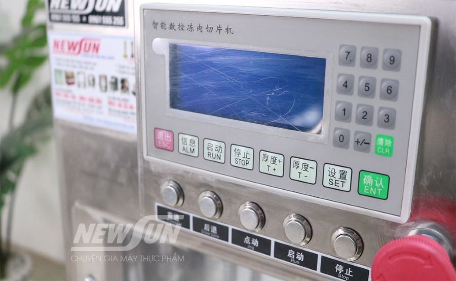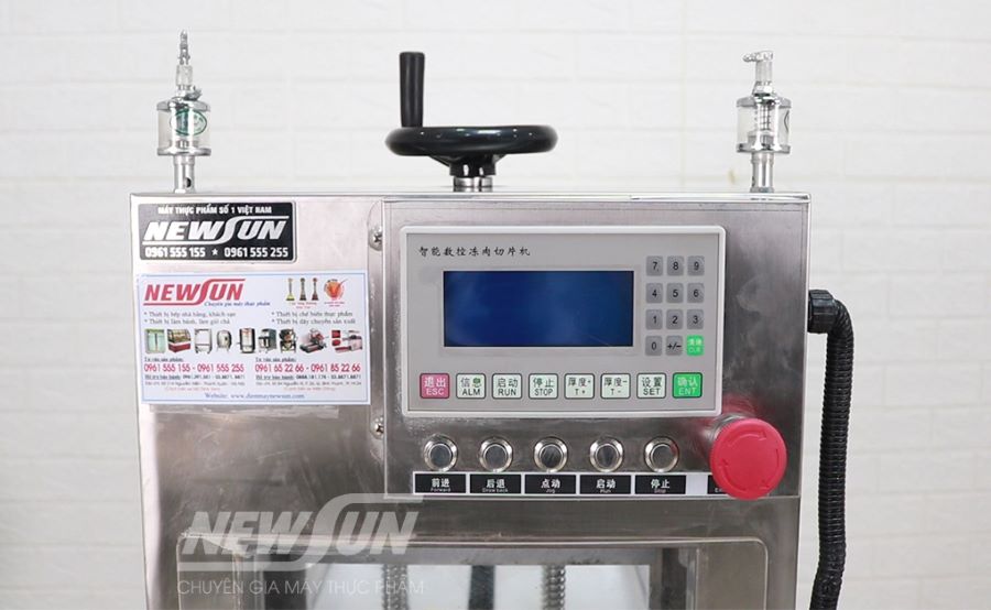 Máy vận hành thông qua bảng điều khiển điện tử thông minh với các núm điều chỉnh dễ sử dụng. Bạn chỉ cần đặt cuộn thịt vào khay và bật công tắc, máy sẽ tự động đẩy thịt vào và cắt thành các lát mỏng.