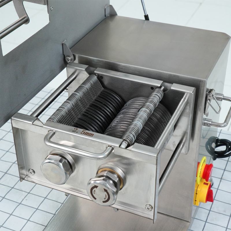 Máy thái thịt tươi sống RQ-III được trang bị hệ thống dao kép làm từ thép S420, có độ cứng cao và chống mài mòn tốt. Nhờ đó, lưỡi dao có thể hoạt động liên tục mà vẫn đảm bảo hiệu quả cắt ổn định.