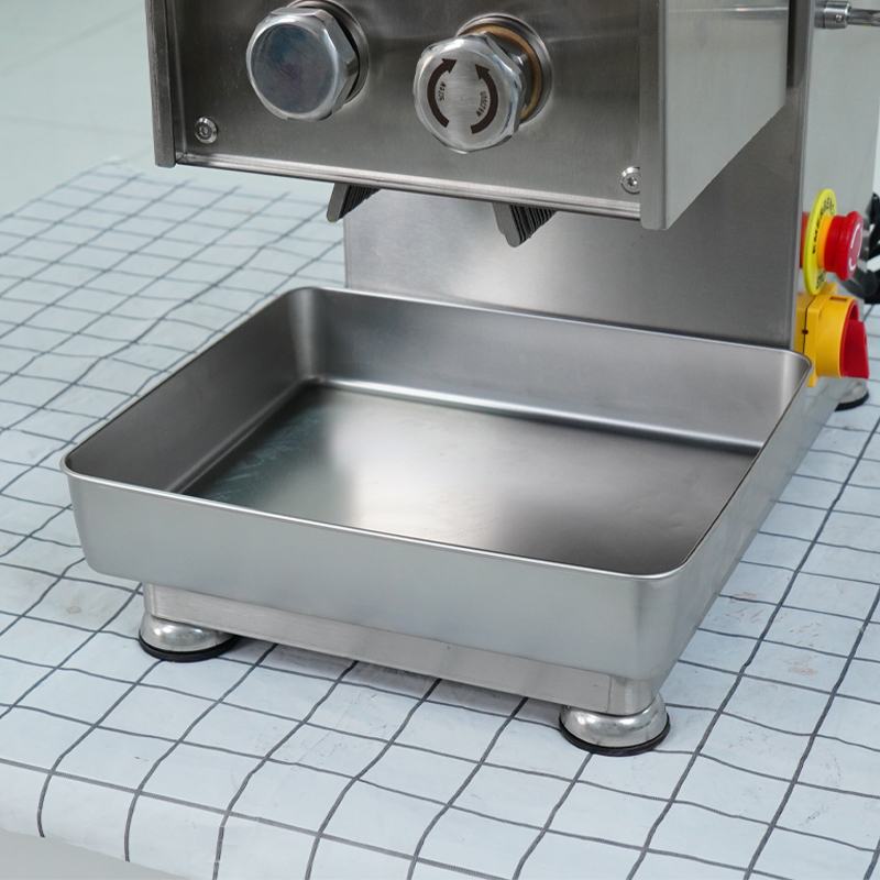 Khay hứng bằng inox giúp thu gom thịt sau khi cắt gọn gàng và sạch sẽ. Thiết kế tháo rời giúp việc vệ sinh nhanh chóng và thuận tiện.